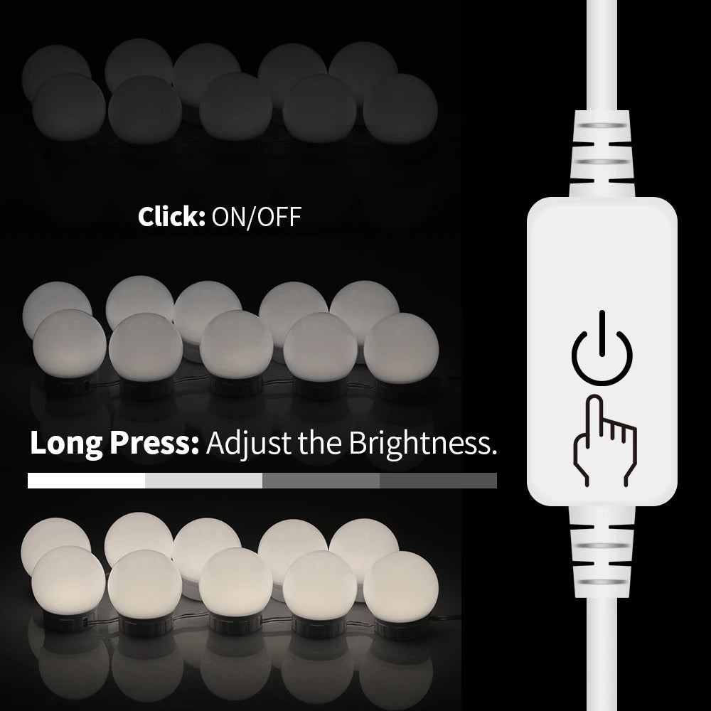 Illuminate your beauty routine with these LED Vanity Mirror Lights featuring 14 dimmable bulbs. Perfect for makeup desks, dressing tables, or vanity mirrors, they provide adjustable lighting for flawless makeup application. Easy to install and energy-efficient, these lights enhance visibility while adding a professional touch to your space.